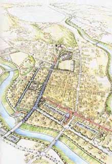 「麓」と呼ばれる鹿児島県特有の城下町として形成された町の中心市街地整備構想。中心部に残る町割りや武家屋敷街を活かし住環境と観光機能を強化する「ふもと文化の里」づくり構想を提案しています。